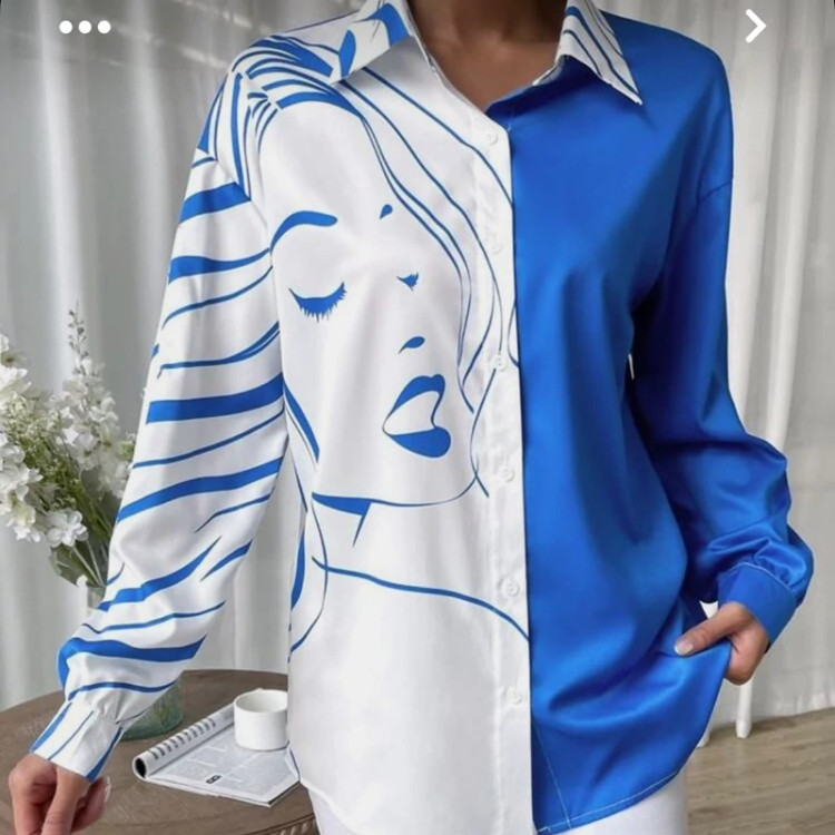 شومیز ساتن طرحدار تن خور عالی و همراه با کار دست طرح روی کار نقاشی با دست و رنگ ثابت میباشد