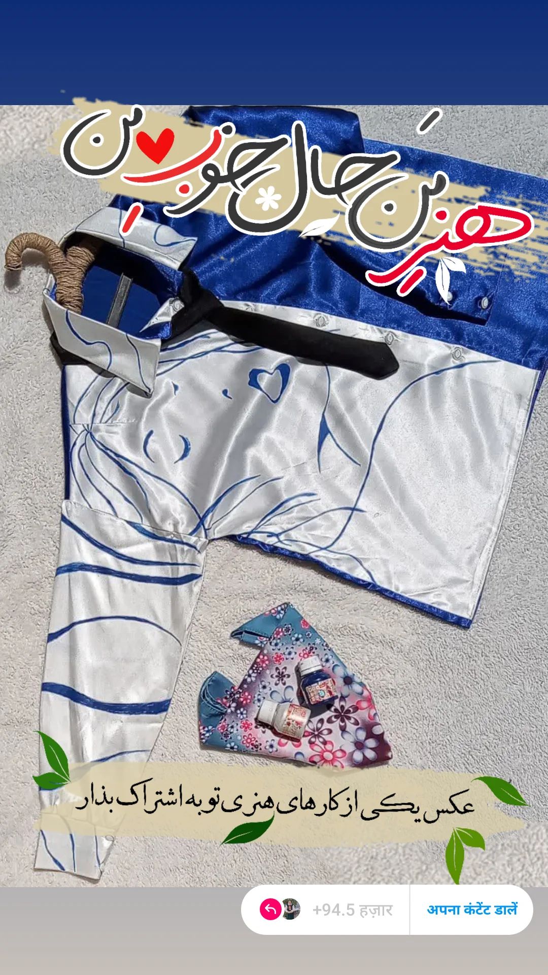 شومیز ساتن طرحدار تن خور عالی و همراه با کار دست طرح روی کار نقاشی با دست و رنگ ثابت میباشد